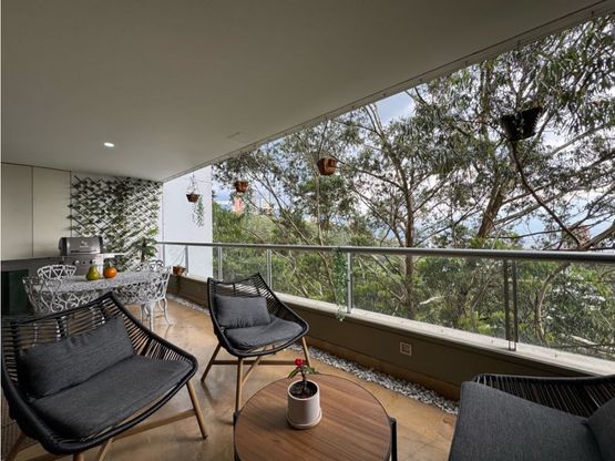 Apartamento en La Calera con 3 habs, cocina moderna, sala de estar, 2 balcones y cuarto útil. Administración $1.374.000, predial $10.087.000. Unidad con piscina