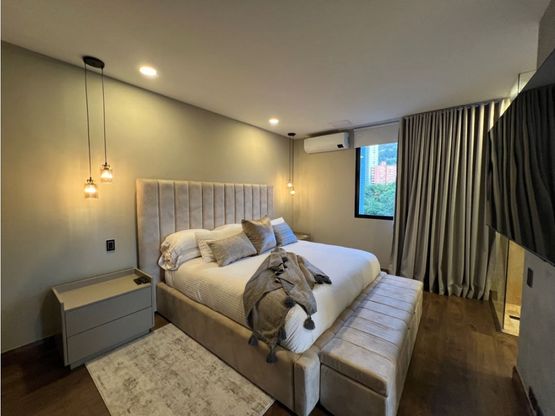 Hermoso apartamento de 72 m², totalmente amoblado, ubicado en una de las mejores unidades residenciales de El Poblado. Cuenta con 1 habitación amplia con baño privado, vestier, clóset y aire acondicionado. La sala y la habitación principal tienen televisor. Cocina abierta, zona de ropas independiente con lavadora, baño social, parqueadero privado y todas las comodidades para una estadía confortable. La unidad es completa, con excelentes zonas comunes y portería.