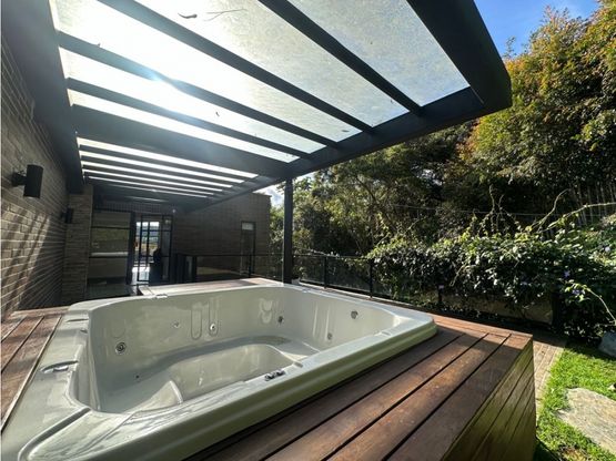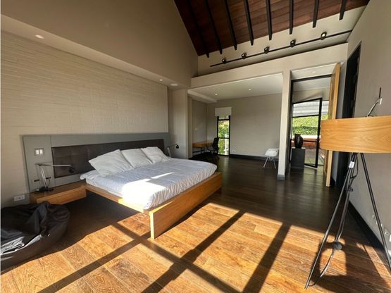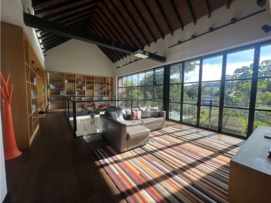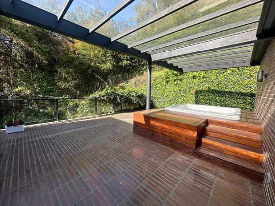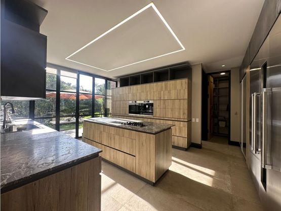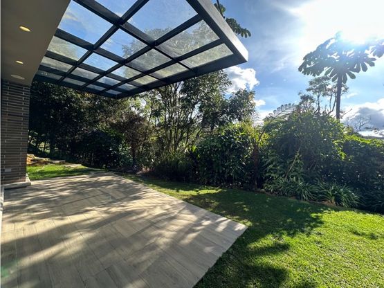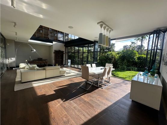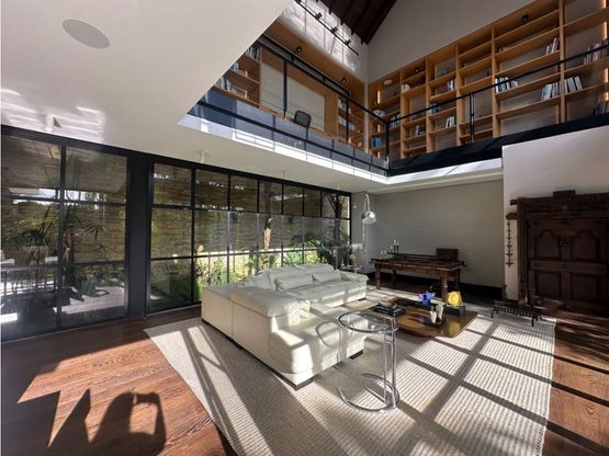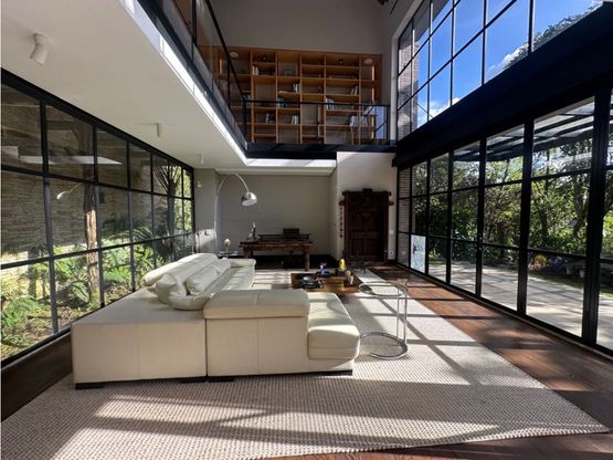 Casa inteligente de lujo en Las Palmas con spa, jardines, cine, cocina premium y sótano. Vista al bosque. Predial $11.000.000. Diseño exclusivo y natural.